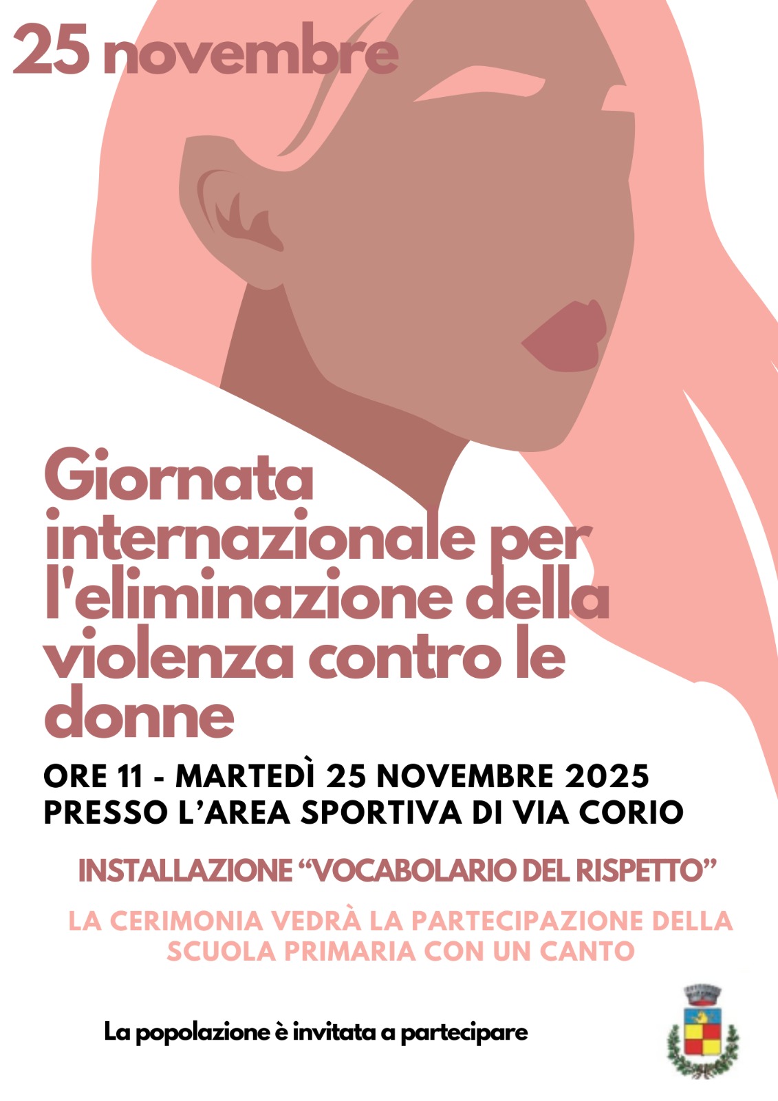 L'Amministrazione Comunale invita la comunità a partecipare all'evento per la Giornata Internazionale per l'Eliminazione della Violenza contro le Donne organizzato insieme alla Scuola Elementare